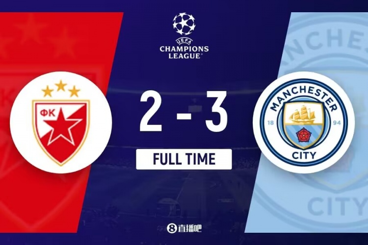 下半场补时5分钟,贝尔格莱德红星2-3曼城。