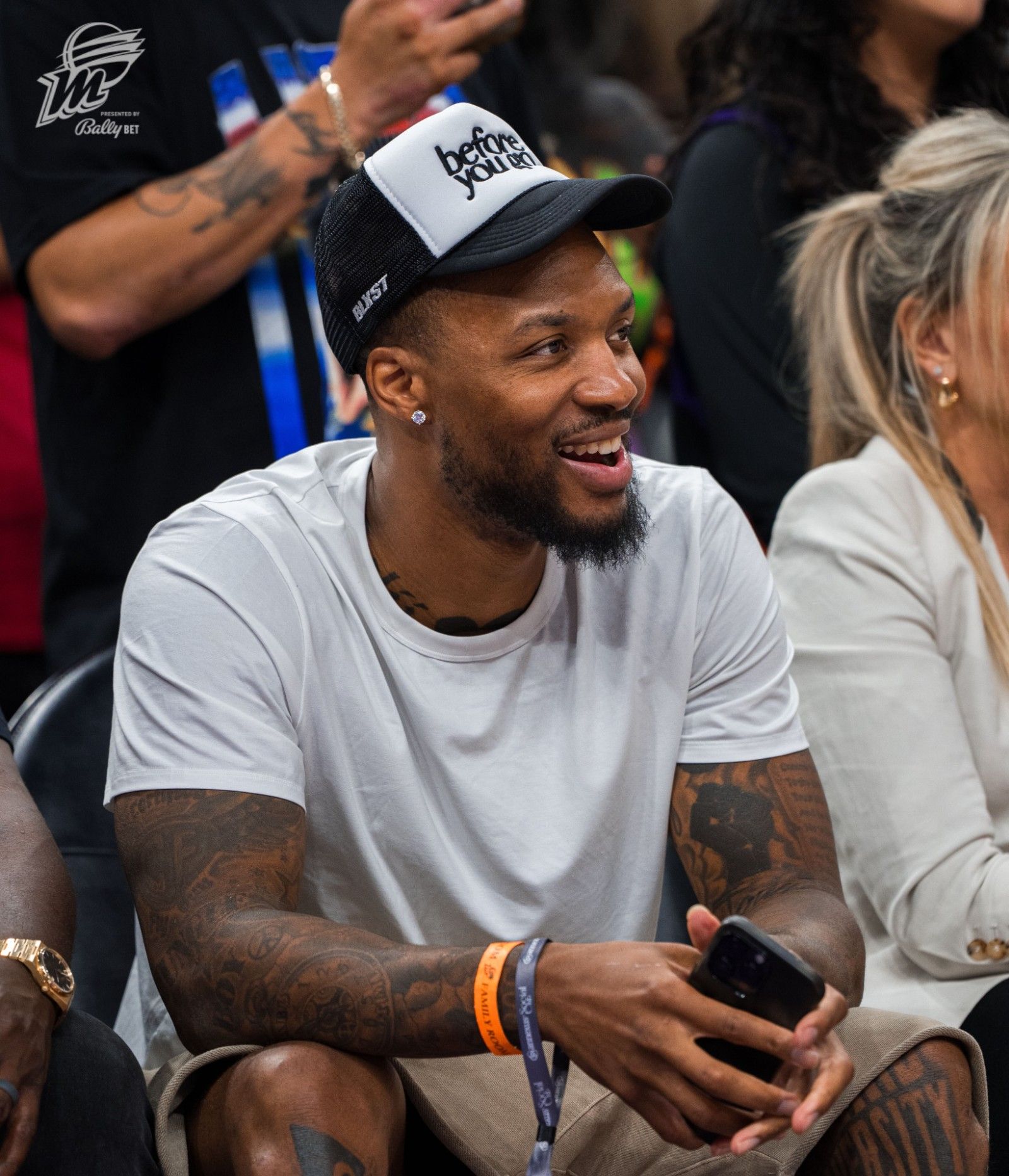 😎这一身挺休闲!利拉德现场观战WNBA水星VS天空