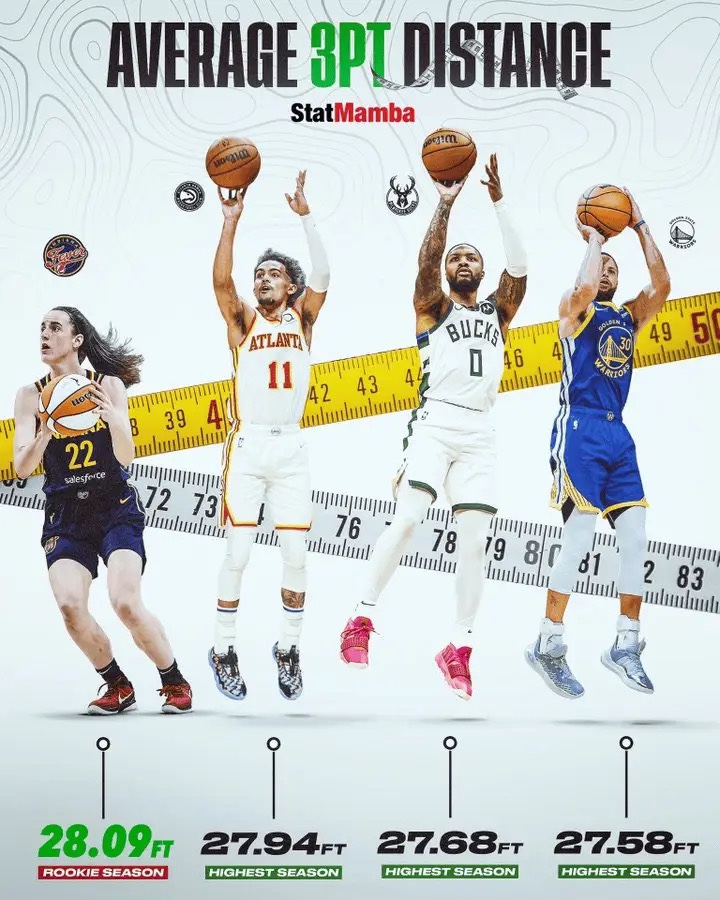 🤙这可是女篮!克拉克平均三分射程达8.56米 远过巅峰库里、利拉德以及特雷-杨