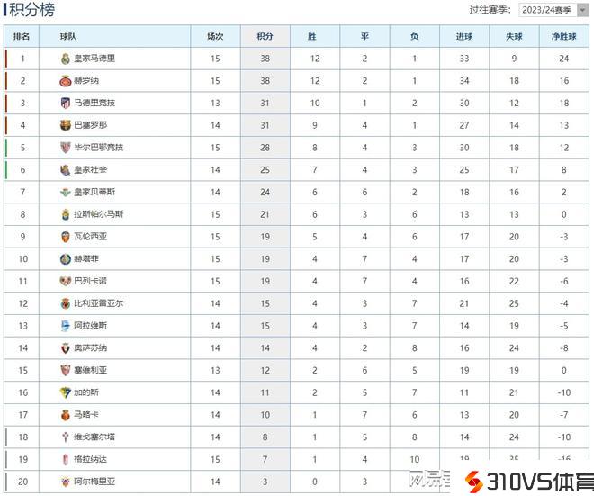 西甲最新积分榜:皇马2球完胜继续领跑,赫罗纳逆转赢球稳居第2!