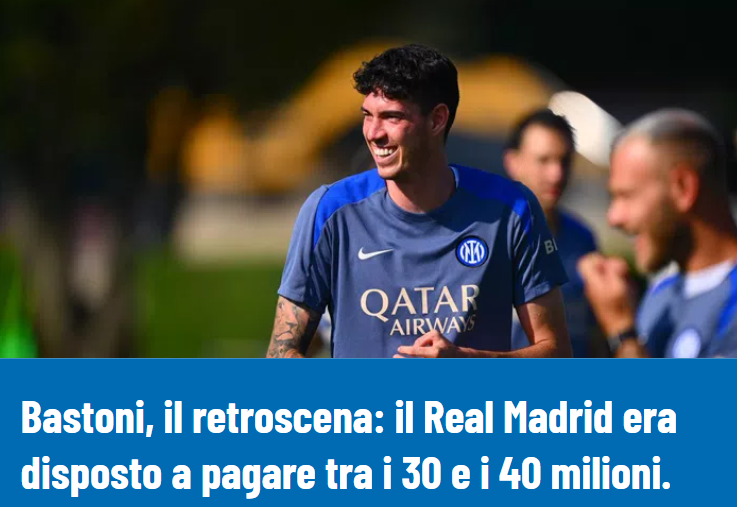 根据西班牙媒体的介绍,皇马希望用3000万到4000万欧元完成巴斯托尼的收购,但在询价阶段就被国米果断拒绝。由于报价过低,在社交网站上也遭到了很多球迷——包括意大利、西班牙球迷的嘲讽。巴斯托尼目前在《转会市场》的估价就是7000万欧元,又刚刚完成续约不久,这样的报价显然无法说服国米放走未来多年意大利队的绝对主力中卫。