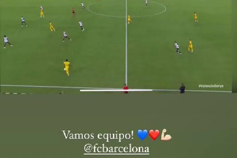西甲首轮,巴萨客场对阵瓦伦西亚,目前正在度假的巴萨球员费尔明在社交媒体上分享了一张巴萨比赛的截图,来为球队加油打气,没想到这一行为引发了争议,因为截图显示,他正通过盗版渠道观看巴萨的比赛。
