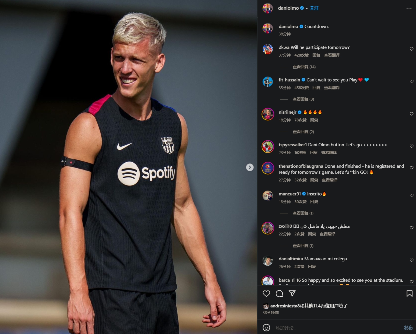 【一图流】首秀即将到来!奥尔莫社媒晒训练照配文:倒计时