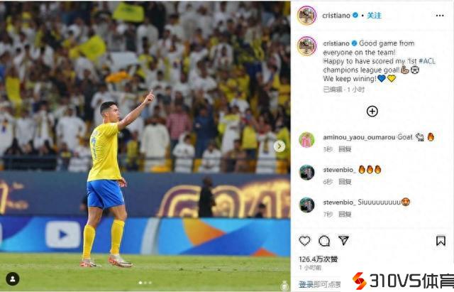 C罗社媒:很快乐打进我第一个亚冠进球,我们在继续获胜!