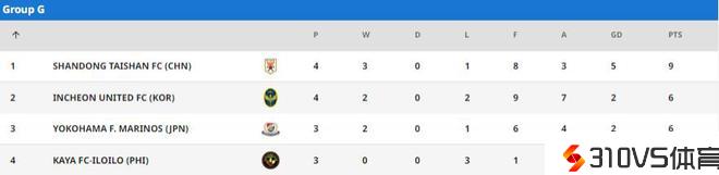 亚冠G组积分榜:泰山双杀仁川联积9分继续领跑,占得小组出线先机