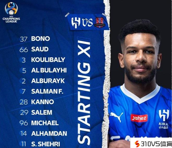 利雅得新月发布本轮亚冠首发:布努守门,库利巴利领衔后防线