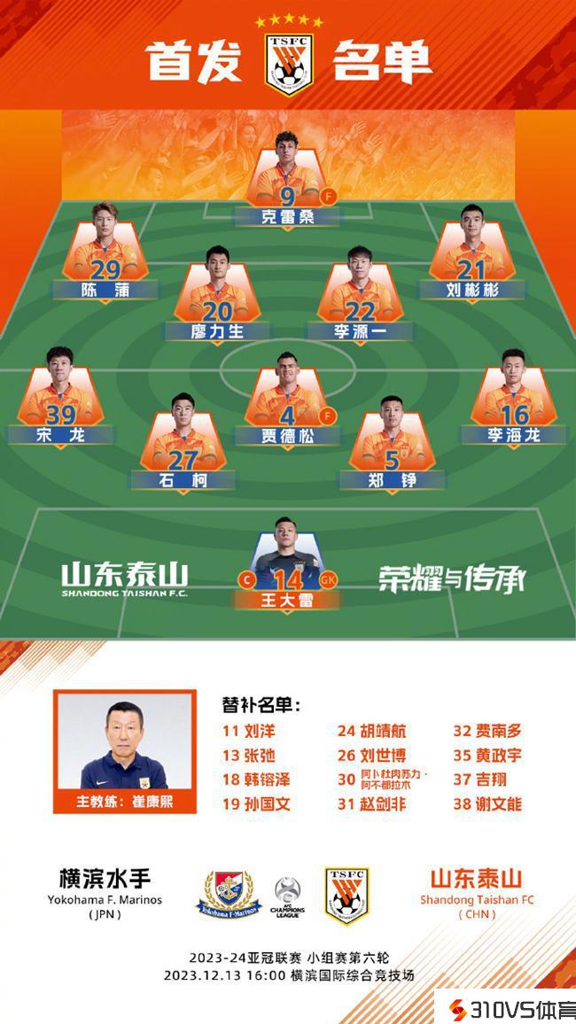 泰山队在前5轮拿到12分,掌握出线自动权,本场打平即可确保以小组第一出线,只需不输3个球以上,异样可以晋级淘汰赛。稍显不利的是,由于费莱尼、莫伊塞斯告别球队,帕托回巴西养伤,球队只剩两名外援可以出战。但兵发横滨前,崔康熙已率队在在韩国停止了超越一周的集训,为这场关键战做足了预备。
