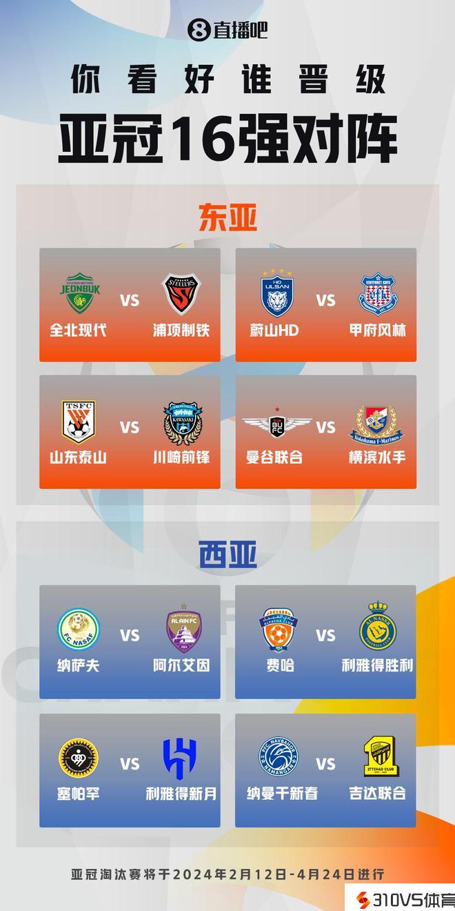 亚冠1/8决赛对阵:山东泰山vs川崎前锋,利雅得成功vs费哈