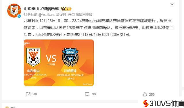 泰山队官宣!亚冠对手川崎前锋揭秘,苗原晒4个字,并传一好音讯