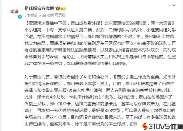 足球报泄漏泰山引援停顿,鲁媒:2外援,除非有例外,内援在联络