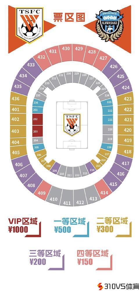 山东亚冠主场票价:分为五档,最低150元,最高1000元