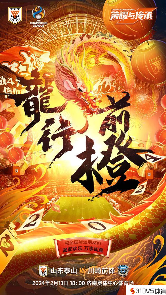 龙年首战,山东泰山发布战川崎前锋海报:龙行前橙