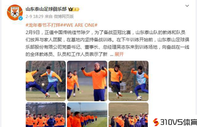 而燃眉之急是打好亚冠竞赛,距离亚冠越来越近,泰山队也正式官宣最新静态:2月9日,正值中国传统佳节元旦,泰山队众将士在基地内坚持备战训练。当日下午训练末尾前,总经理吴志东离开训练场地送祝愿,希望发扬出敢打、敢拼,永不坚持的泰山肉体,心心相印,打好竞赛。