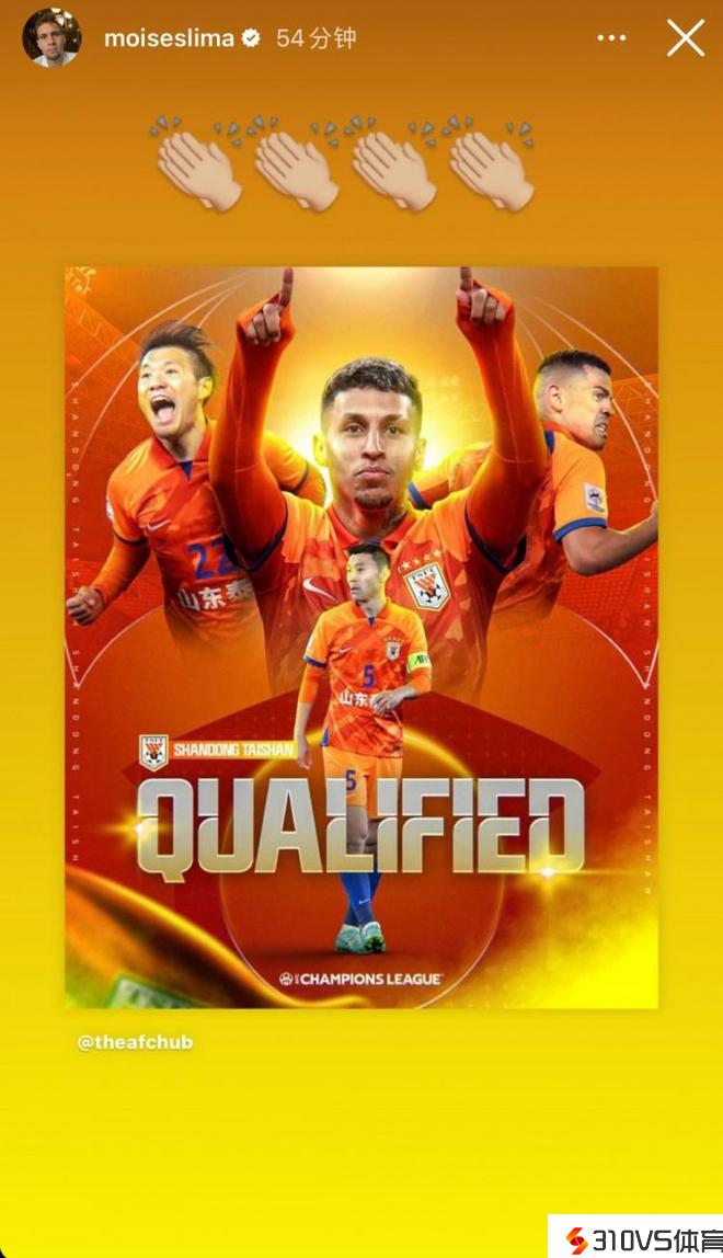 无情有义!前外援莫伊塞斯更新社媒,晒出泰山晋级亚冠八强海报