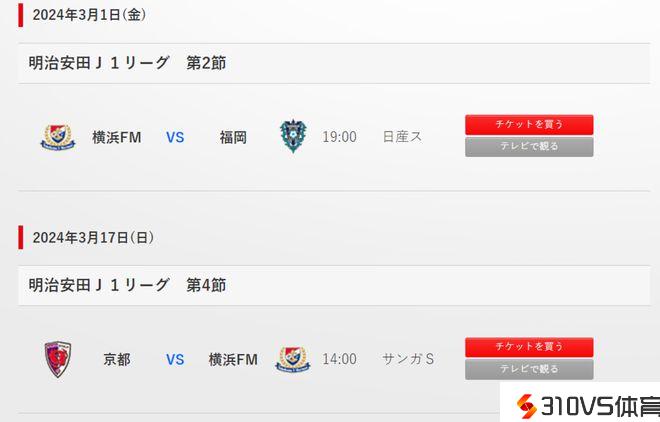 横滨水手两回合亚冠竞赛时期已没有其他赛事布置。 J联赛官网截图