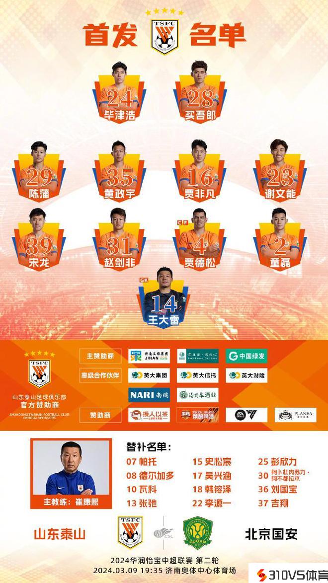留力亚冠?泰山队官方京鲁大战名单:克雷桑、郑铮、刘洋列席