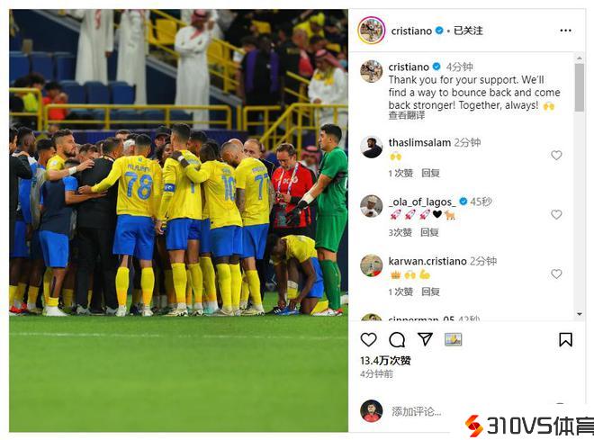 初次亚冠之旅止步8强c罗:我们会找到变强的方法!永远勾搭!