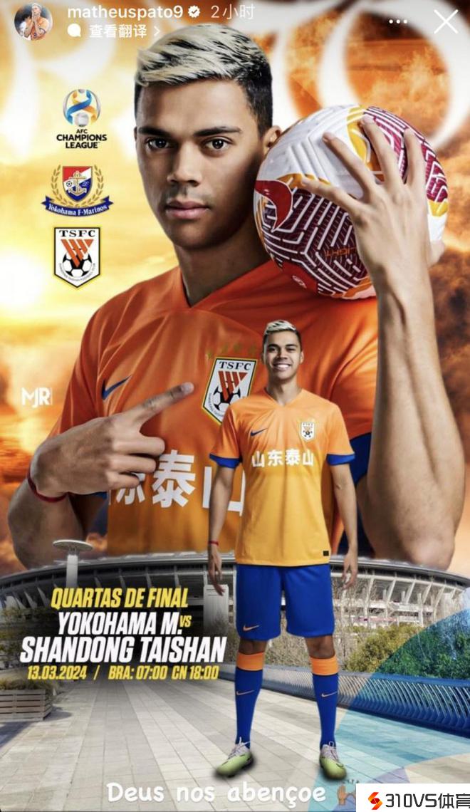 继续代表泰山队退场?帕托社媒发布亚冠1/4决赛次回合团体海报