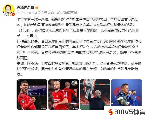 詹俊:曼联是上赛季以来联赛杯进球最多的球队 蓝军vs布莱顿不容失望