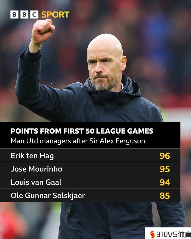 滕氏曼联50场英超拿96分,仅次于弗格森、高于穆帅&范加尔&索帅