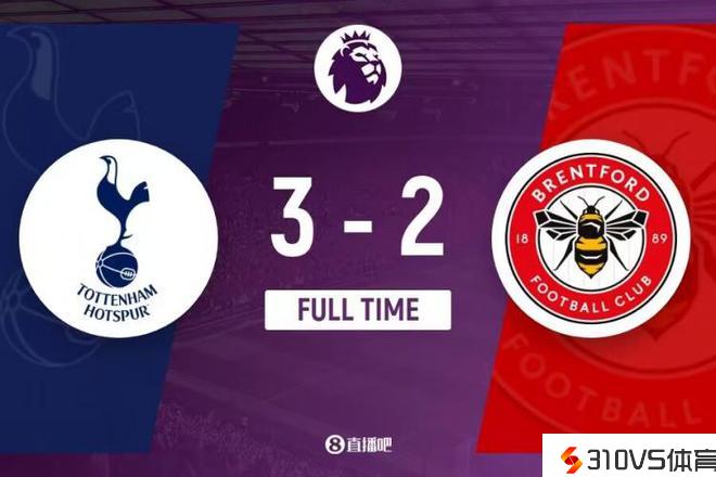 最终,热刺3-2布伦特福德。
