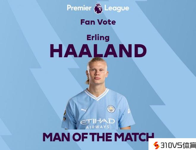 梅开二度!英超官方:哈兰德中选曼城vs埃弗顿全场最佳