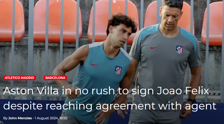 据报道,维拉已经就菲利克斯的转会跟其经纪人豪尔赫·门德斯达成协议,但他们并不急于促进这笔交易的完成。