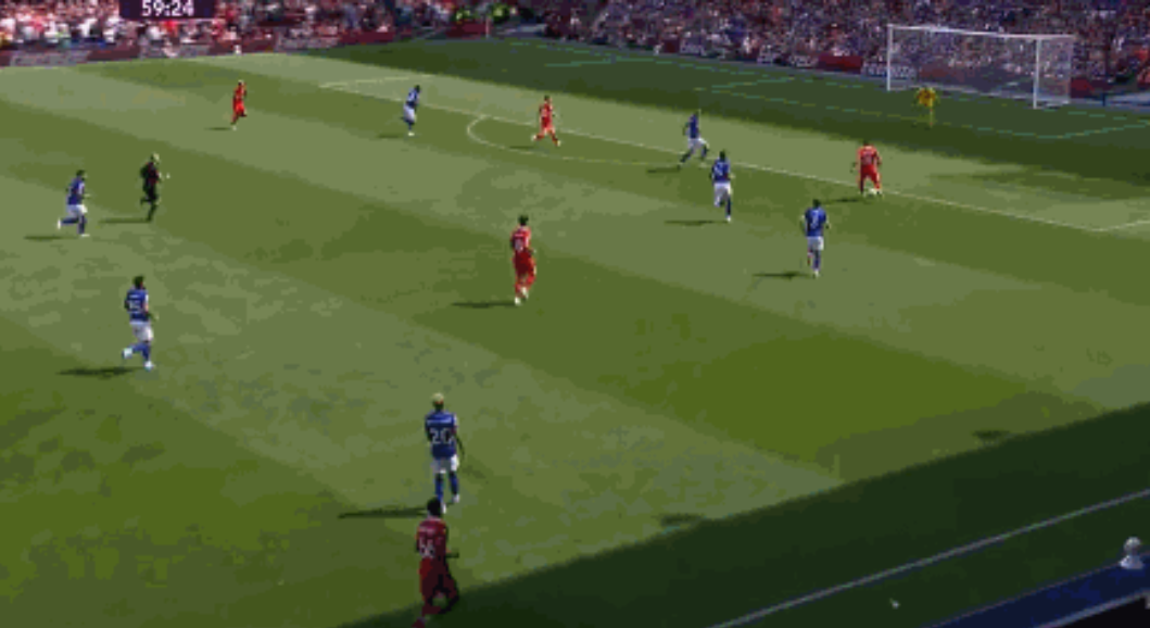 下半场第59分钟,萨拉赫带球突破至禁区后无私横传,无人防守的若塔轻松破门,帮助利物浦取得领先。