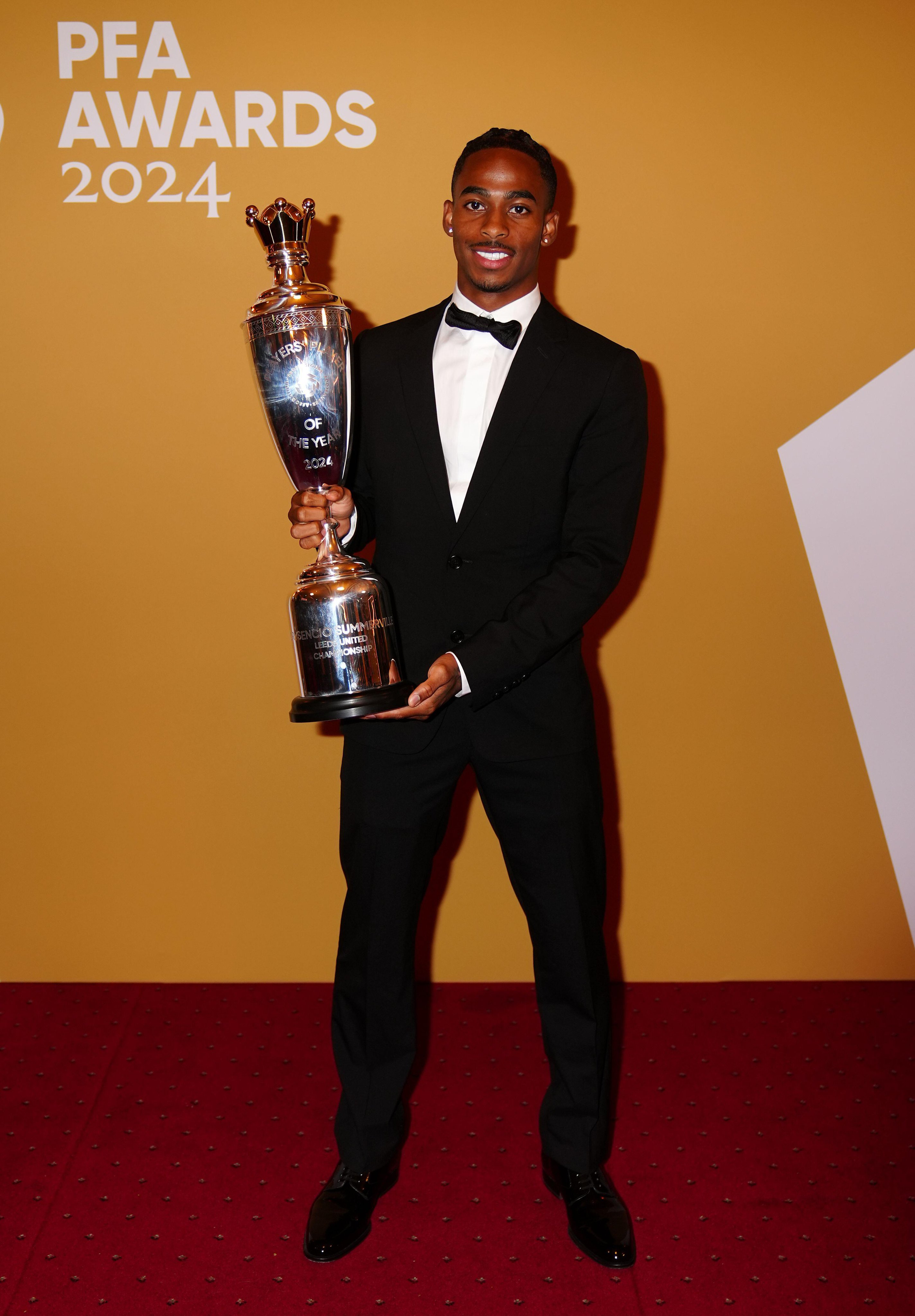 北京时间8月21日讯 在今日凌晨进行的PFA(英格兰职业球员工会)年度颁奖典礼中,今夏转会至西汉姆联的利兹联前锋萨默维尔荣获2023/24英冠年度最佳球员。