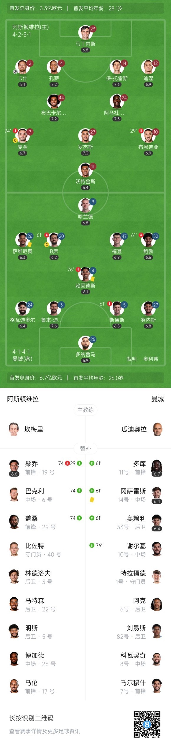 3连胜终结!曼城0-1维拉 哈兰德失单刀连续12场进球中断 卡什制胜