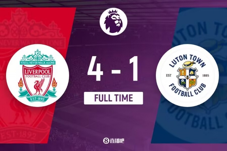 下半场补时8分钟,利物浦4-1卢顿。