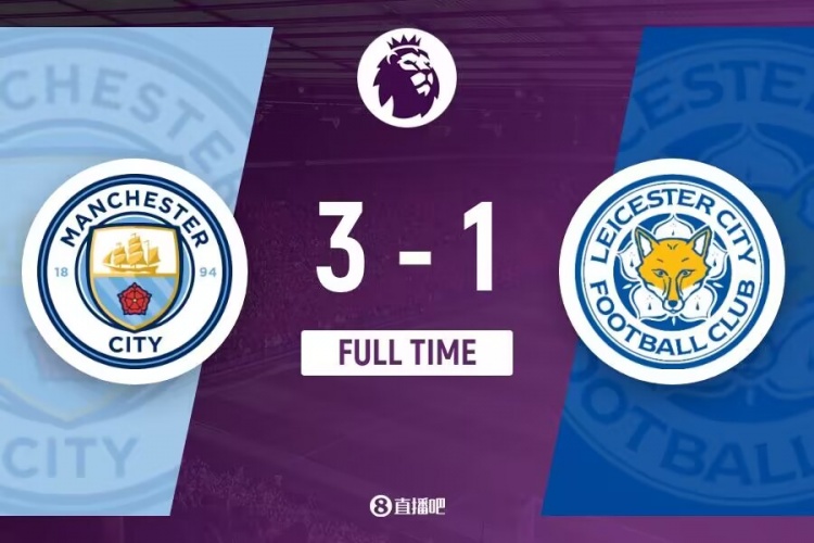 全场比赛结束,曼城3-1击败莱斯特城。