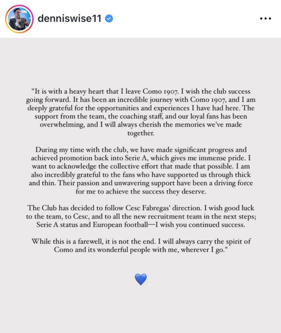 俱乐部决定遵循法布雷加斯定下的方向,我祝愿球队好运,也希望法布雷加斯和新的招募团队接下来一切顺利。