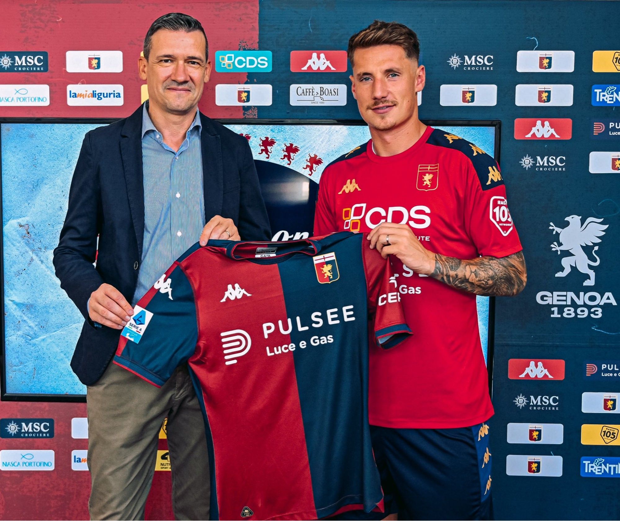 热那亚官方:萨索洛前锋皮纳蒙蒂租借加盟球队 身披19号球衣