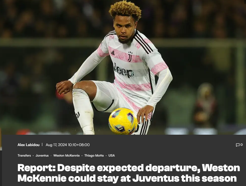 GOAL英文版报道,整个夏窗都有转会传闻的美国国脚麦肯尼或留在尤文。