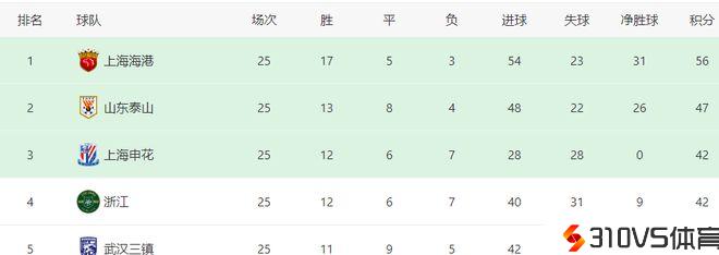 前面25轮中超事先,上海申花12胜6平7负,积42分,目前暂时排在中超积分榜的第3位。从积分榜的情势来看,上海申花虽然目前排名第三,但争冠曾经基本有望,力争保住一个中超四强席位,则是申花本赛季更为实践的一个目的。目前,前面追逐的浙江、武汉三镇、北京国安一个个虎视眈眈,步步紧逼,申花只需稍微出现闪失,恐怕就要被挤出中超4强之列。