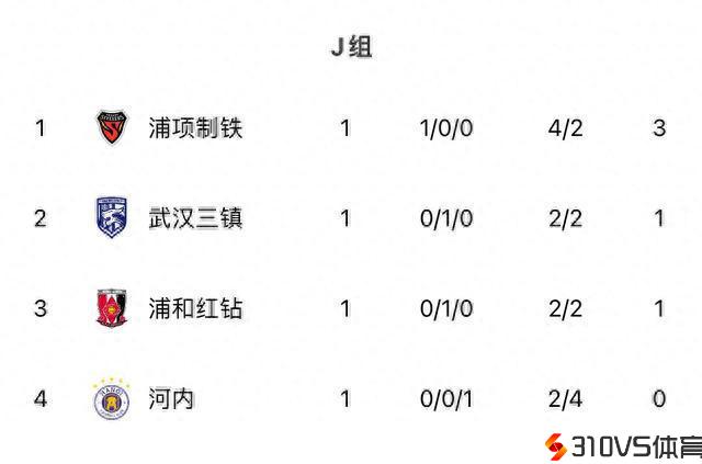亚冠J组积分榜:武汉三镇错失3分位列第二,浦项制铁大胜居首