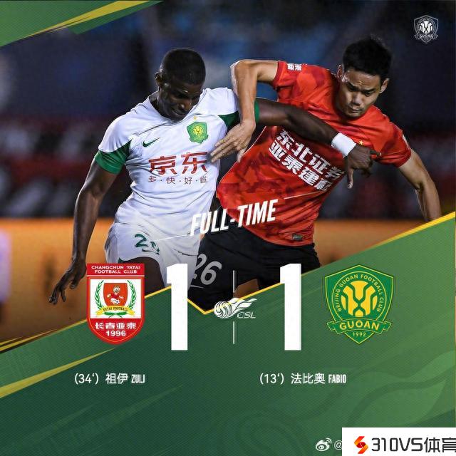 中超联赛第26轮:北京国安客场1比1战平长春亚泰
