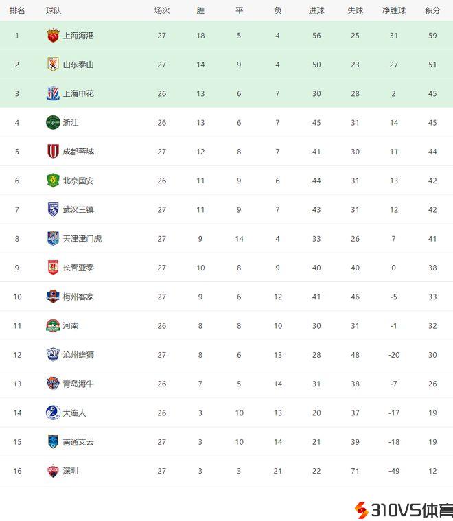 最新积分榜!泰山胜三镇,推延海港捧杯,京连战或送深圳提早升级