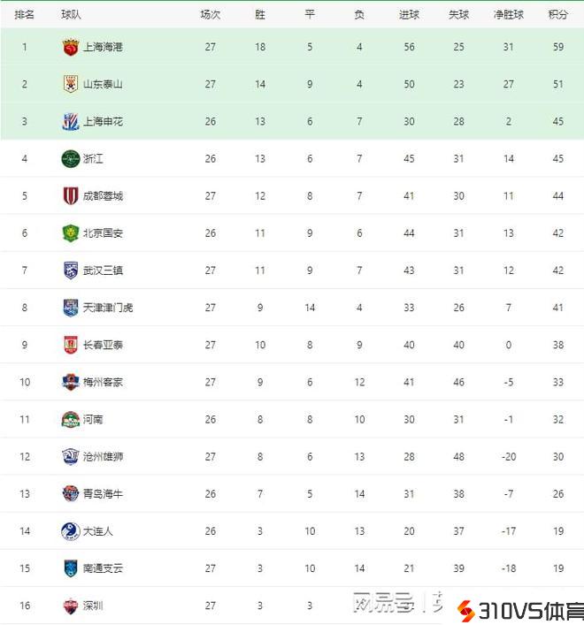 中超最新积分榜:上海海港客胜8分领跑,山东泰山赢球稳居第2!