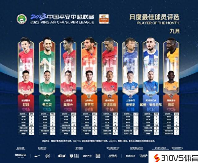 昔日,中超联赛发布了9月份月度最佳球员候选的8名候选球员,奥斯卡、费莱尼领衔。