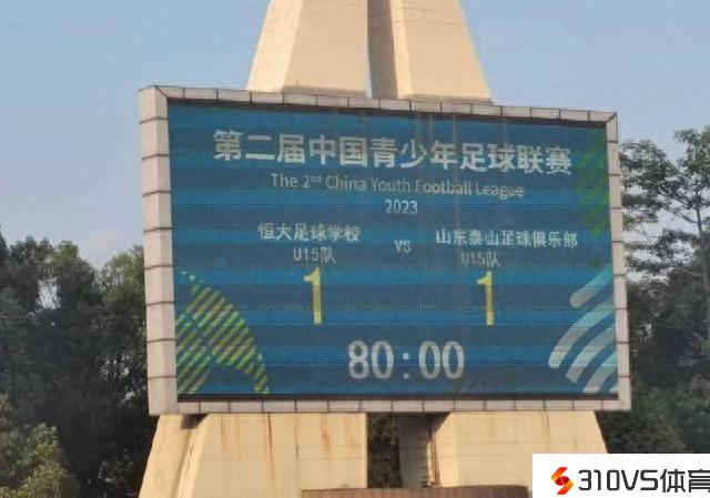 中青赛U15组决赛首回合:恒大足校1-1山东泰山,王伟轩绝平