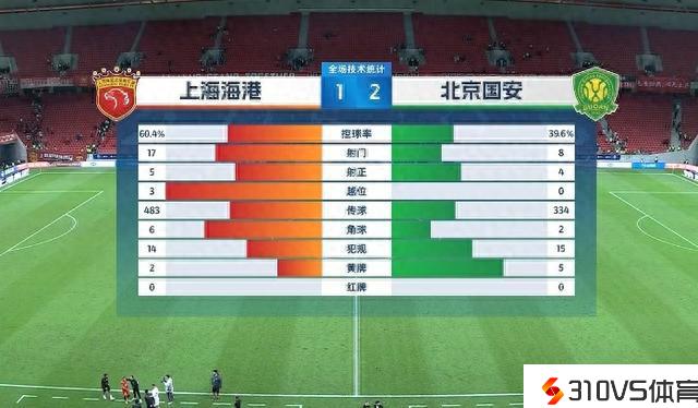 上海海港VS北京国平安场数据:控球率64开,射门数17-8