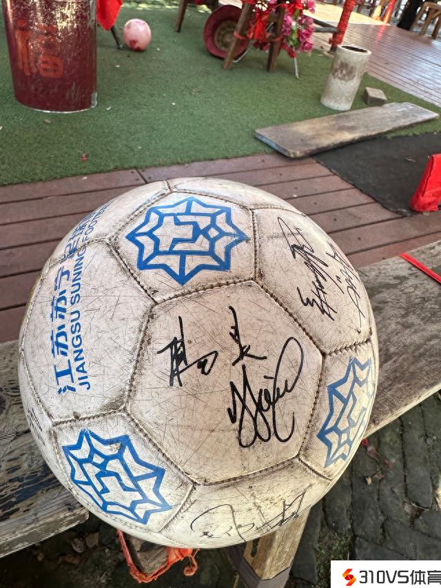 江苏苏宁队员签名足球,成为无锡影视基地水浒城演出道具