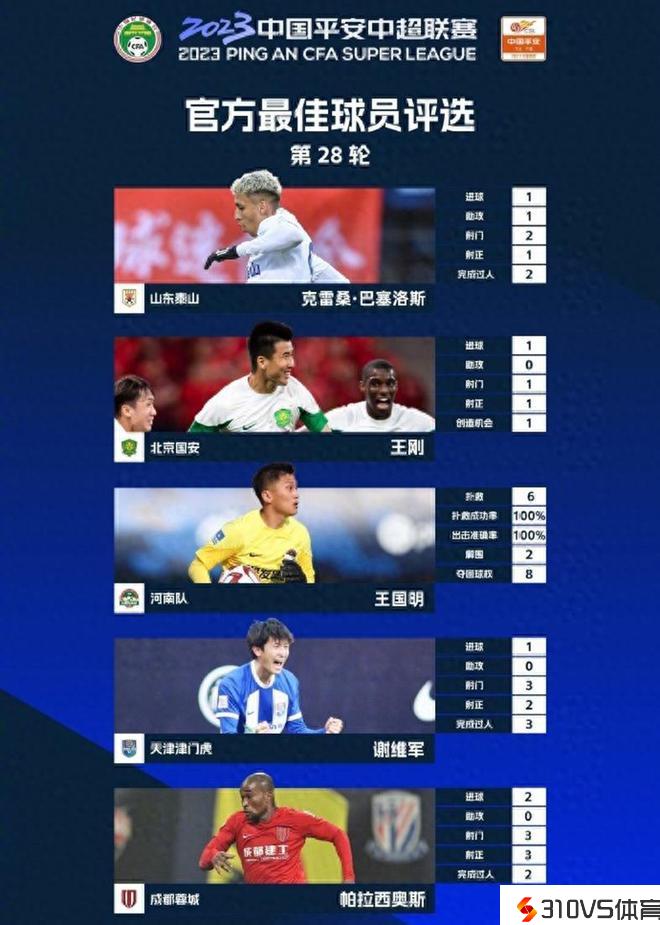 北京时间10月24日,中超联赛官方发布了第28轮最佳球员候选,共5名球员入围,外援两人,外乡球员区分是外援山东泰山队外援克雷桑、国安球员王刚、河南队球员王国明、天津津门虎球员谢维军、成都蓉城外援帕拉西奥斯。