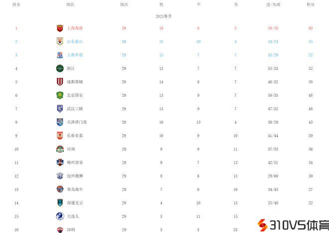 中超最新排名!海港提早夺冠,亚冠席位3争1,保级仍有悬念