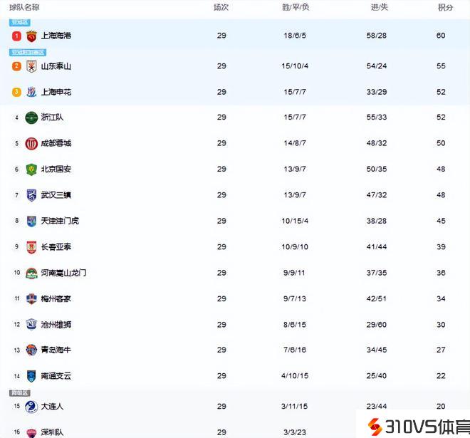 上港提早捧杯,大连濒临升级,国安无缘亚冠,中超最新排名