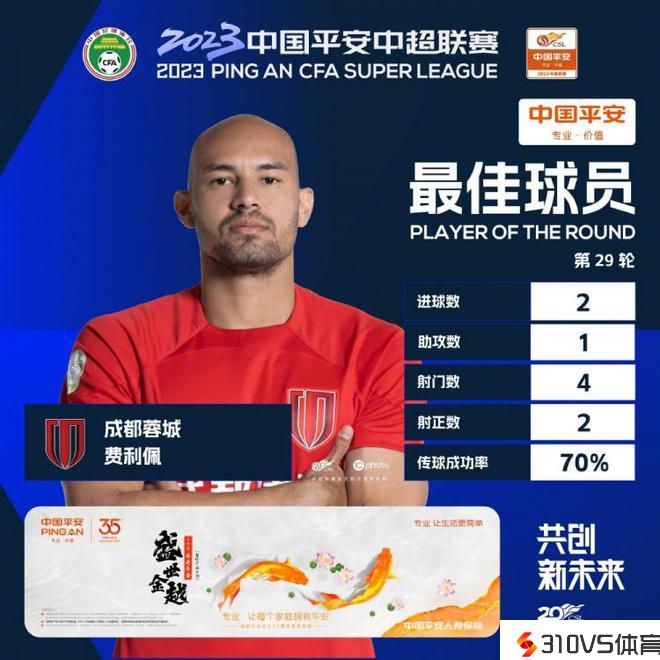 2射1传!中超官方:成都蓉城外援费利佩中选第29轮最佳球员
