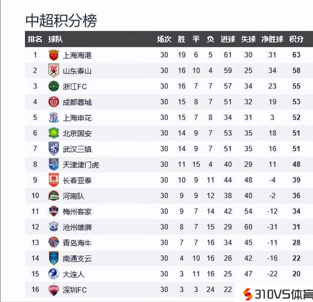 上港第一,泰山队第二,这个早就确定了,浙江队第三,取得亚冠资历,蓉城第四,能否取得亚冠资历需求看足协杯冠军是谁