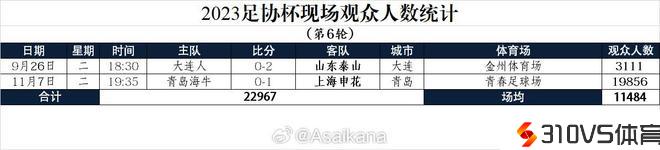 足协杯半决赛观众数:海牛vs申花19856人,大连vs山东3111人